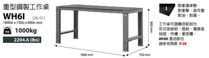 | 高荷重型鋼製工具桌WH6I-W181.5*D75.4*H80cm |