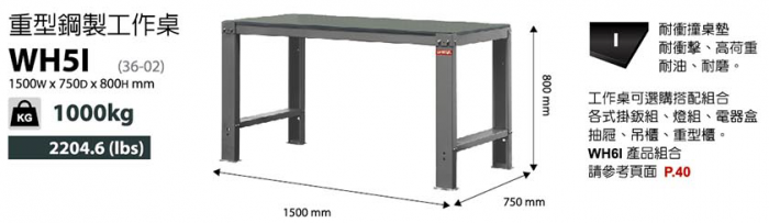| 高荷重型鋼製工具桌WH5I-W151*D75.4*H80cm |