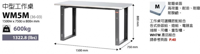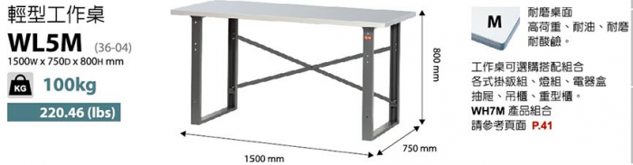 | 中荷重型工具桌WM-W150*D75*H80cm |
