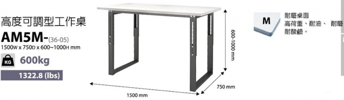 | 高度可調型工作桌-W150*D75*H80cm |