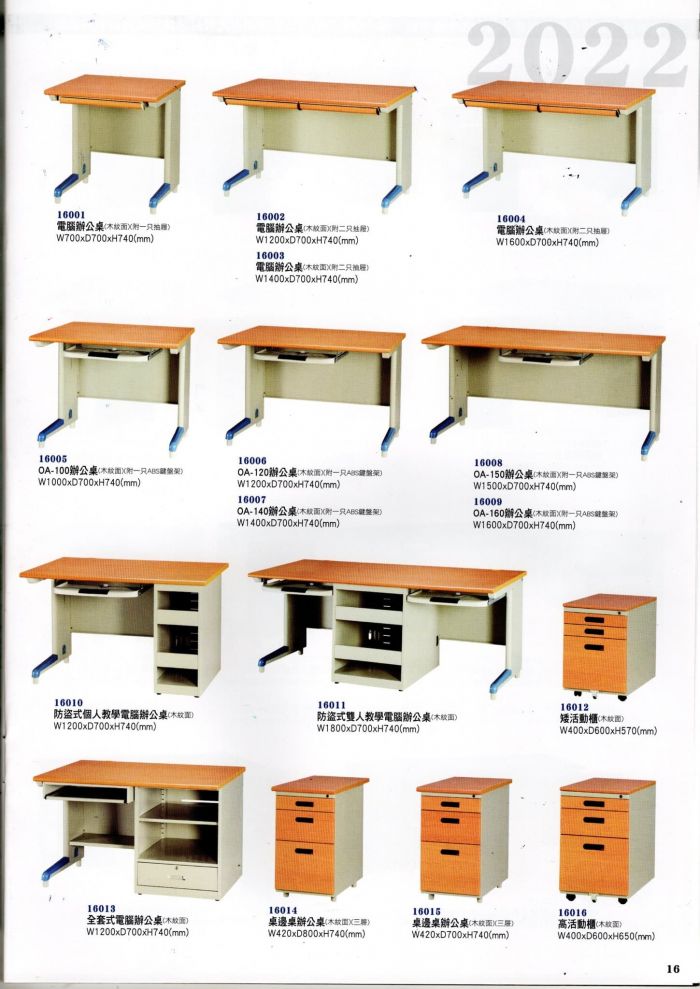 | 16009 OA-160辦公桌(木紋面)(附一只ABS鍵盤架)W1600*D700*H740mm |