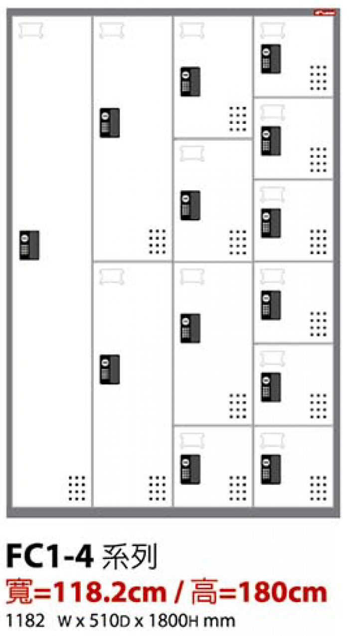 | 密碼鎖置物櫃FC1-4系列-4排櫃 |