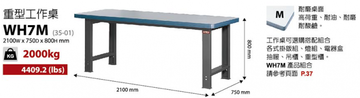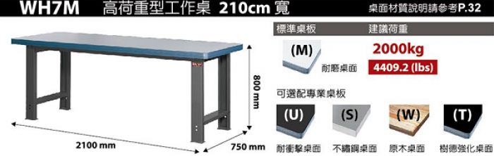 | 高荷型重型工作桌WH-7系列-W210*D75*H80cm |