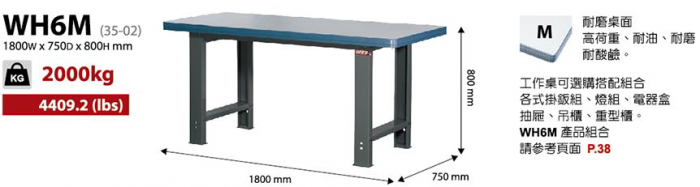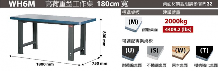| 高荷重型鋼製工具桌WH6I-W181.5*D75.4*H80cm |