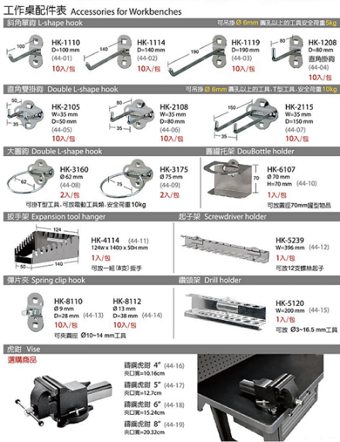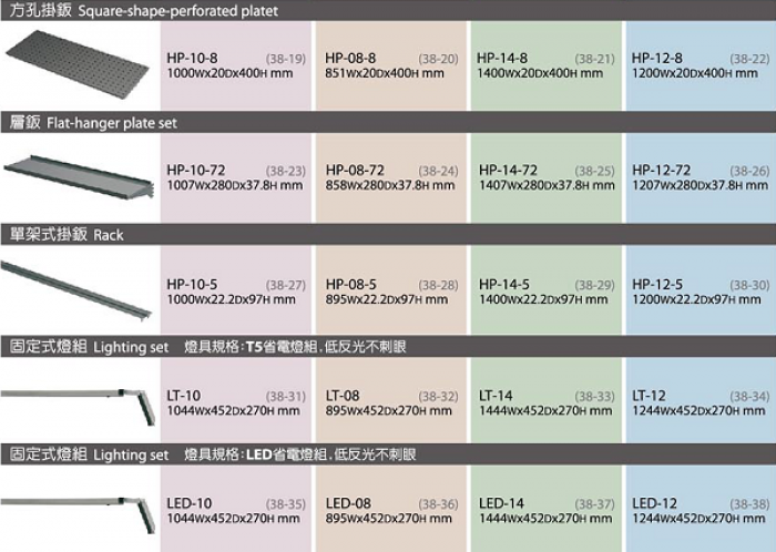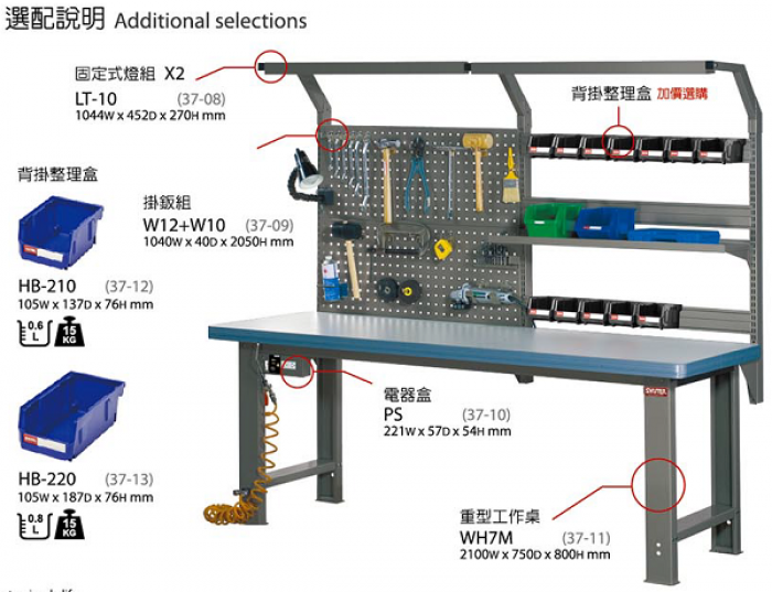 | 工作桌選配表 |