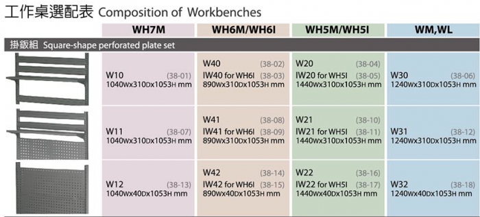 | 工作桌選配表WH系列 |