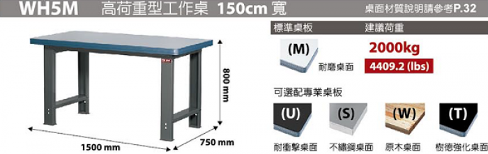 | 高荷型重型工作桌WH-5系列-W150*D75*H80cm |